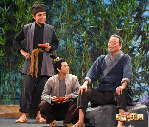 为了呈现毛亨、毛苌对《诗经》的保护和传承,戏剧舞台以师承毛亨的毛苌为主视角人物,让“当代读书人”撒贝宁带领着毛苌回到过去,再次见到已逝的夫子毛亨。他们将一同回顾毛亨少年时以《诗》明德,青年时以《诗》传情,出征时以《诗》鼓劲等人生故事,以及其晚年收毛苌为徒,护《诗》、注《诗》、传《诗》的人生经历,把《诗经》的精神世界与毛亨的情感世界相融合。